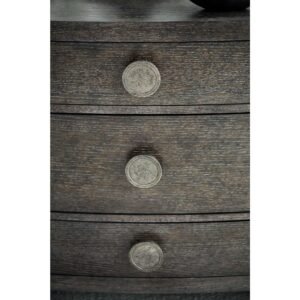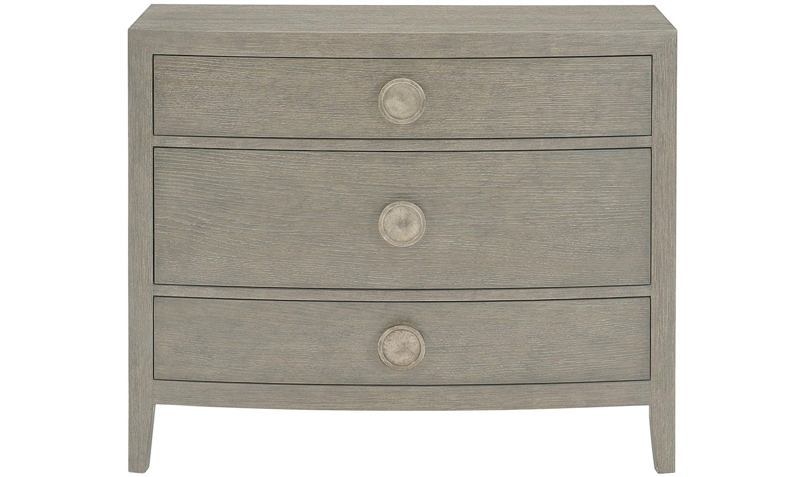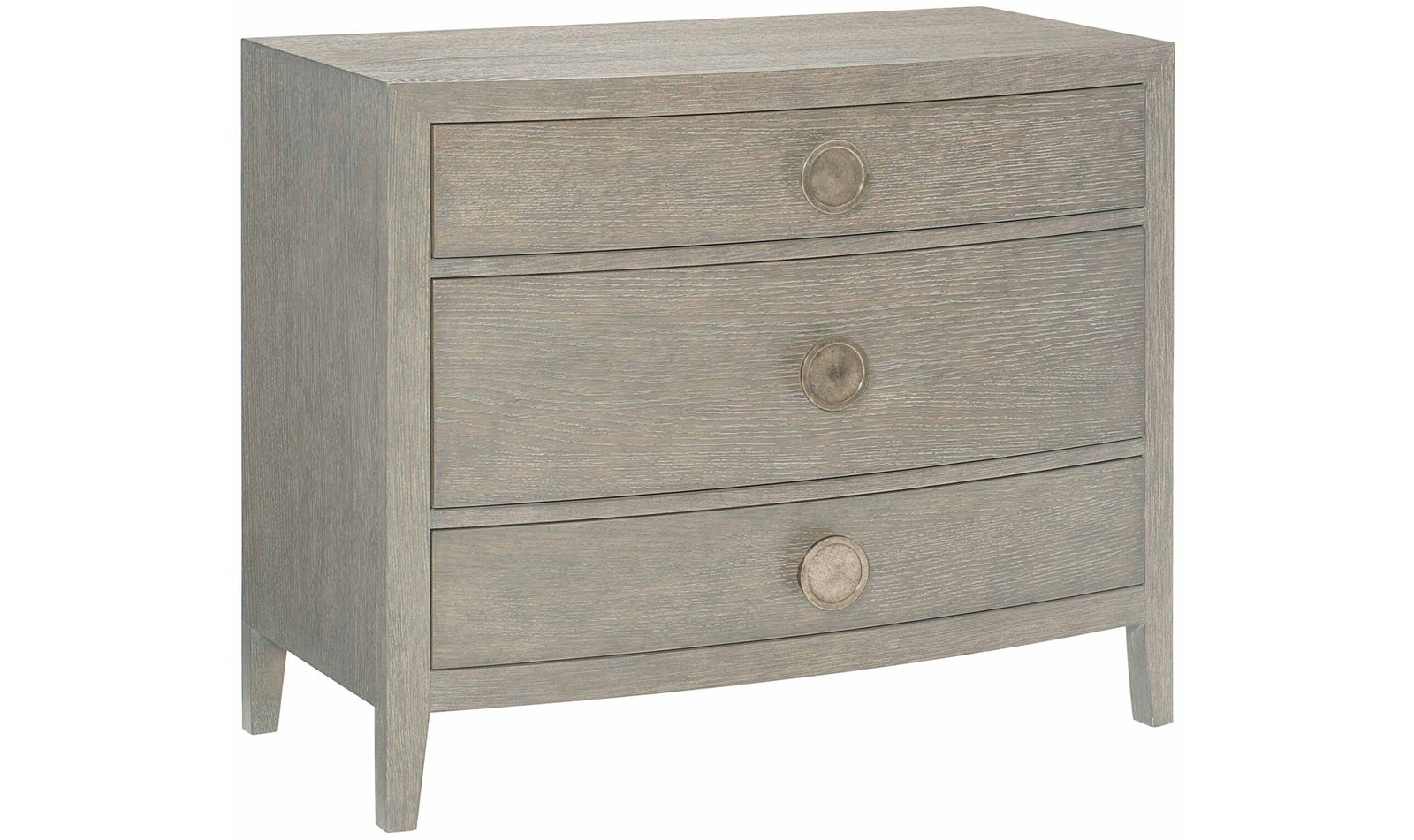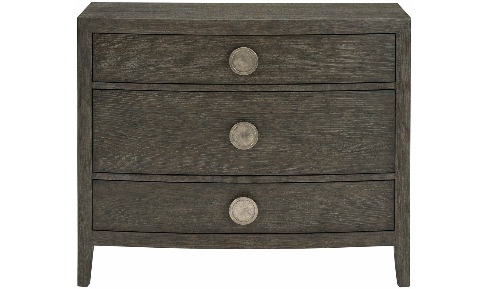 - Bowed front with three drawers