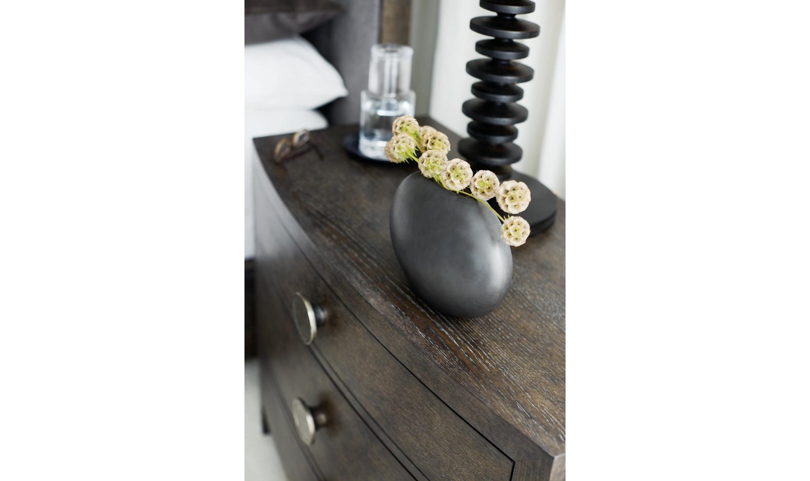 Designed for both style and functionality, the nightstand includes adjustable glides and an anti-tip kit for added safety. As part of the award-winning Linea collection, recognized with an ISFD Pinnacle Award for product design, this nightstand brings a touch of refined elegance to any bedroom. [endDescription][Specifications]