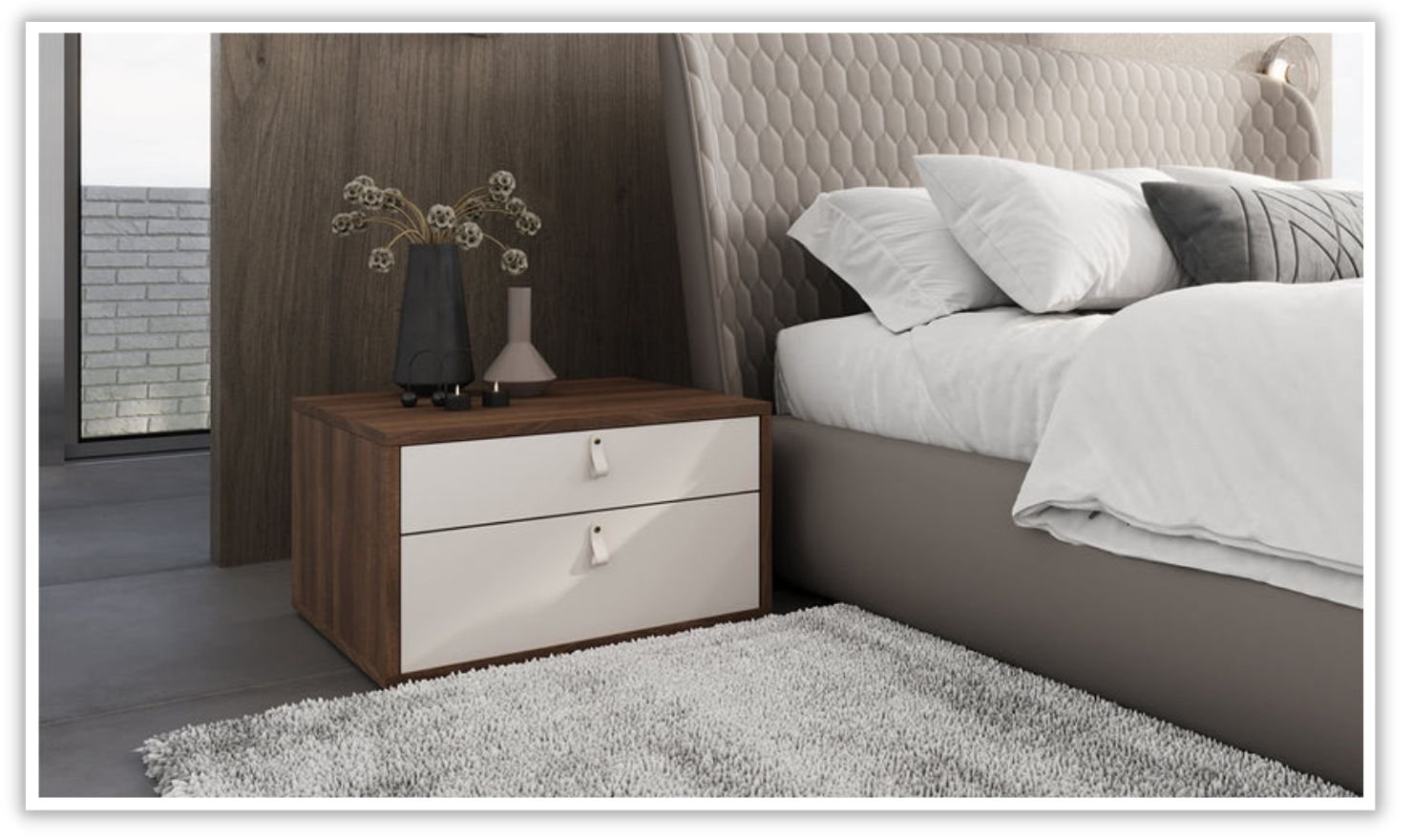 This Lucia nightstand features two soft close drawers adding elegance with functionality to your space.