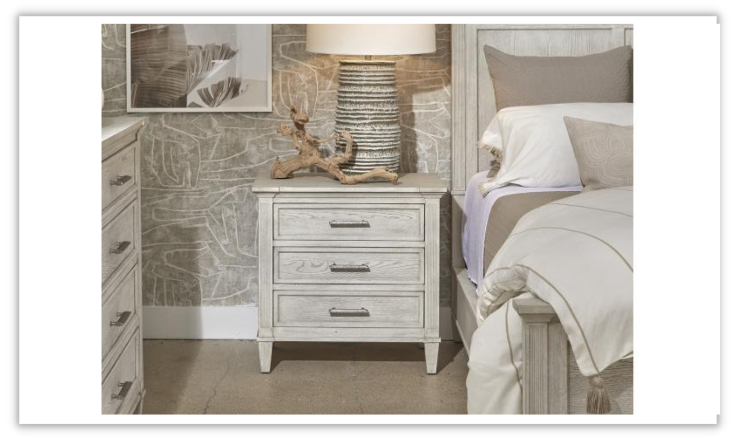 Beads have been squared off for a cleaner “New Traditional†vibe. The upholstered beds feature Culp’s Dinara fabric. Making the most of the classic oversized basket weave, Dinara features a varied yarn blend of polyester, rayon, and linen. This yarn-dyed cloth is sophisticated yet simple, creating a casually comfortable look. [endDescription][Specifications]
