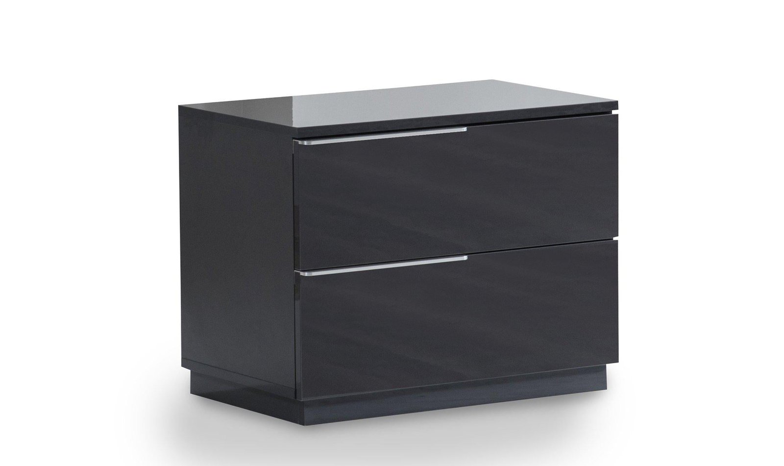 Warsaw nightstand delivers vast storage for favorite books and accessories. Polished profile crafted of glossy grey finish attracts the eye, brushed aluminum hardware positioned at bed side for convenience, completes trendy design and functionality. Deep drawers feature soft-closing glides for silent self-closing